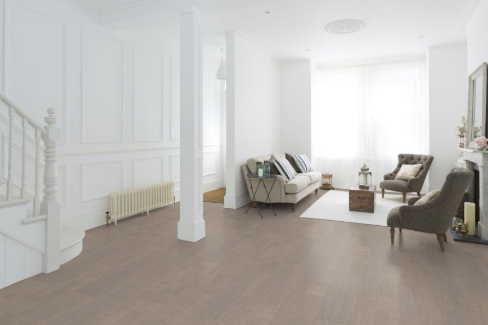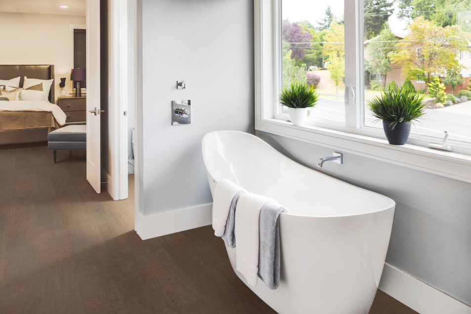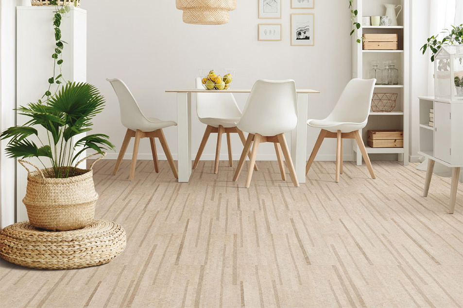 ComCORK™ Flooring is a PVC-free cork flooring plank constructed with a recycled composite core for improved strength, wear resistance, and stability. Utilizing natural cork veneers, it combines visual warmth with the technical durability required for high-use commercial environments. Its acoustic and thermal performance enhances occupant comfort, offering designers a practical, sustainable, and design-forward alternative to conventional resilient flooring.