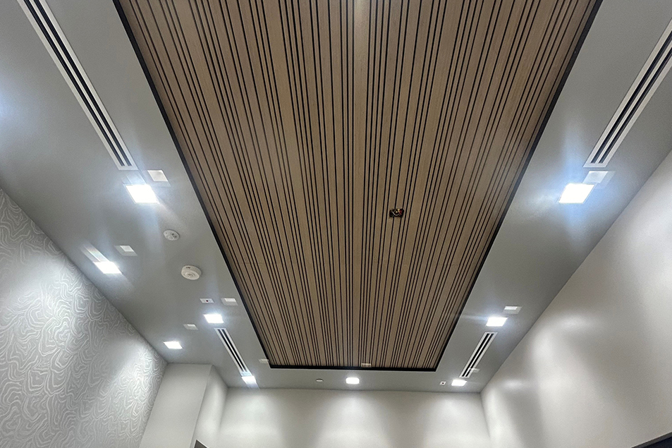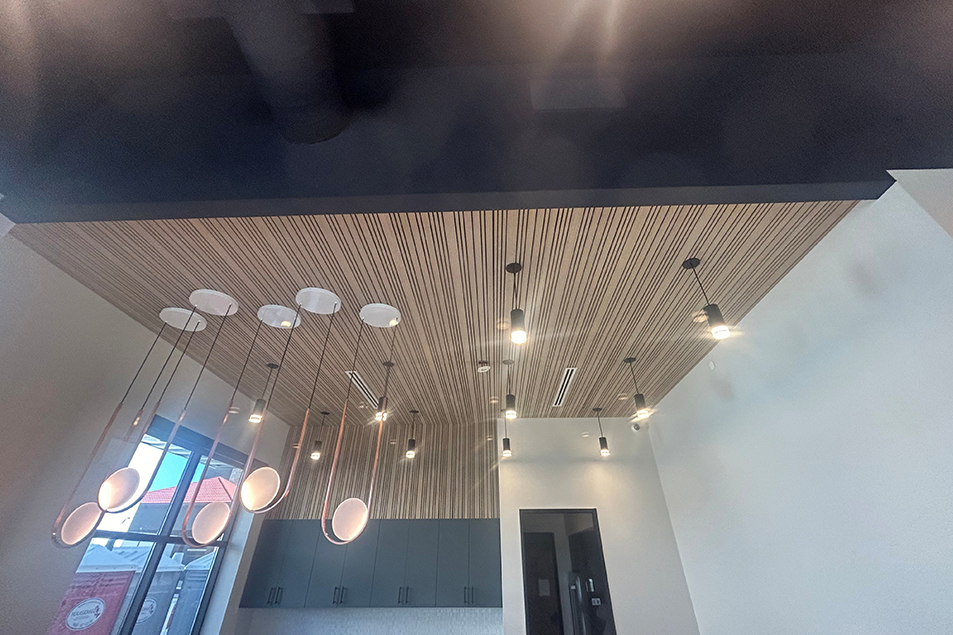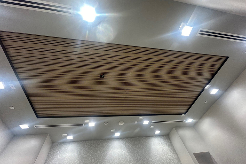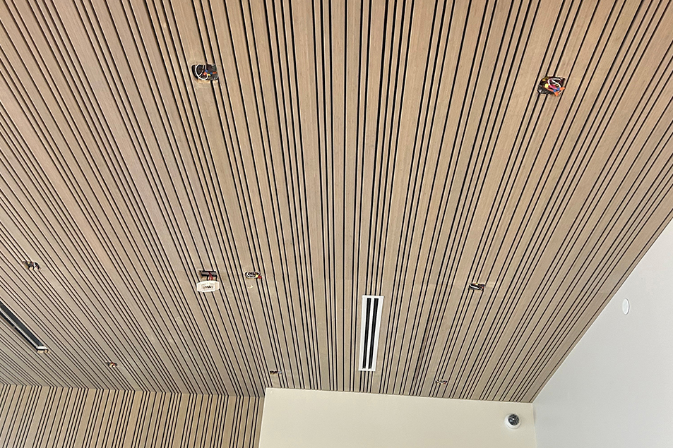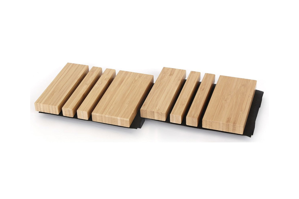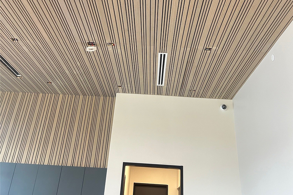 CoreBOO™ AIR MESH SLAT Panels combine sustainable bamboo slats with an integrated acoustic fabric backing that achieves an NRC rating of 0.75 in open-plenum installations. The lightweight design offers strong acoustic performance and clean visual lines, suitable for commercial and hospitality environments seeking modern sound control solutions.