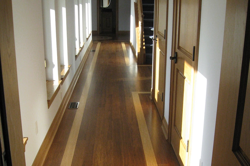 Strandwoven™ Bamboo flooring is manufactured by densifying shredded bamboo fibers into exceptionally hard, stable planks. With over twice the hardness of traditional bamboo, it provides long-term durability and dimensional stability suitable for commercial environments. Available in natural and stained finishes, Strandwoven offers a refined, sustainable alternative to hardwood flooring with minimal environmental impact.