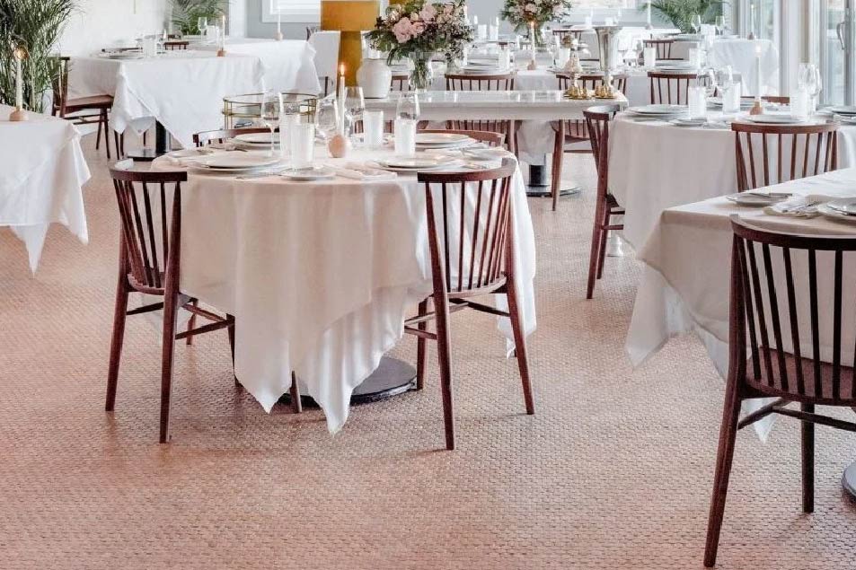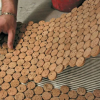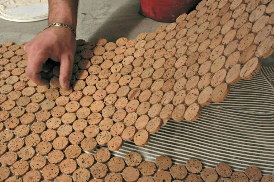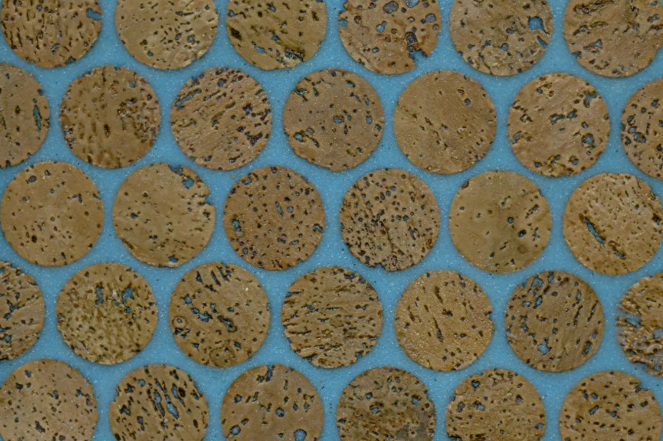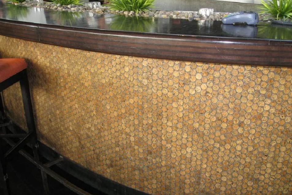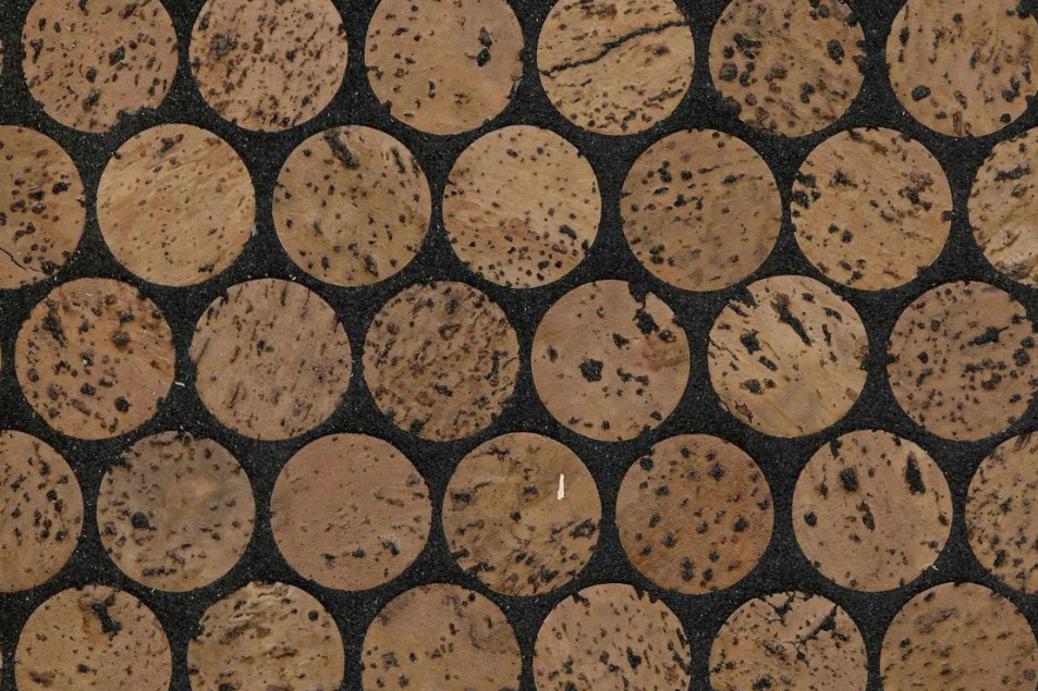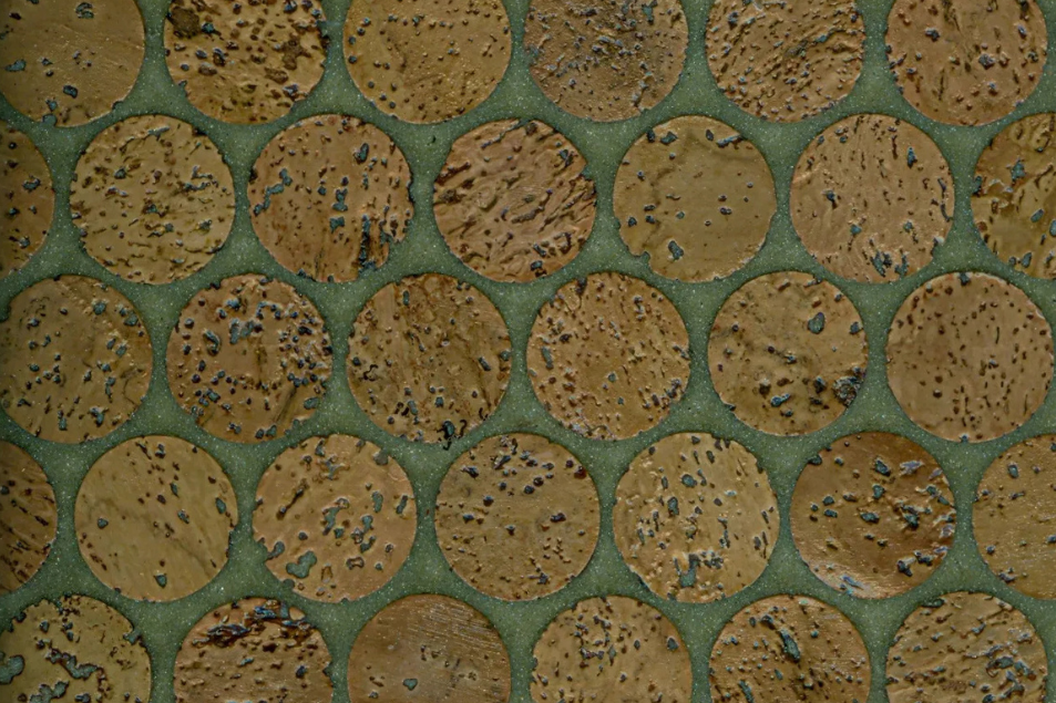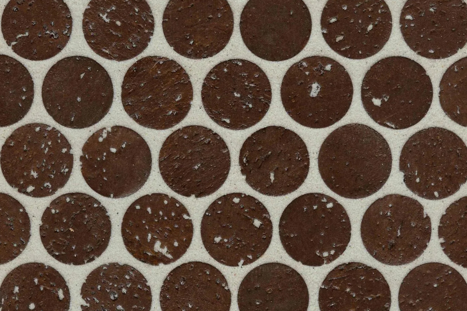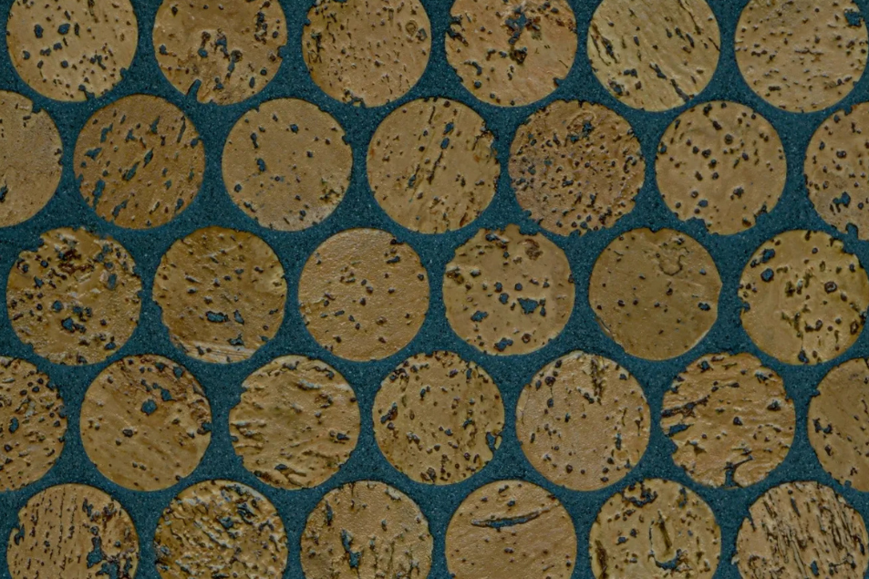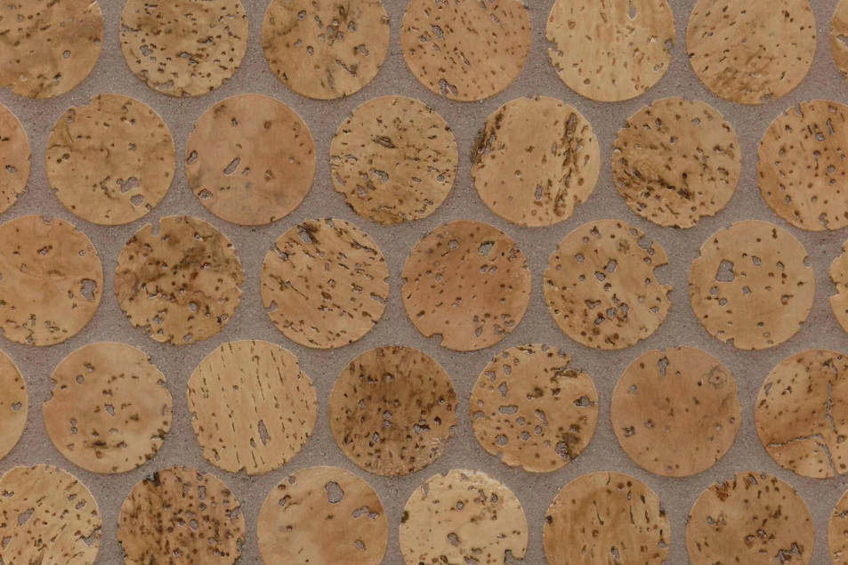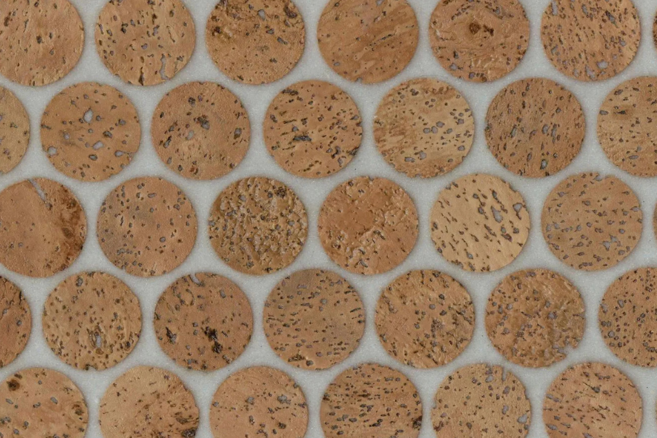 Versacork® Mosaic tiles are composed of recycled wine cork discs, creating a distinctive, tactile surface suitable for walls, floors, and curved applications. Prefinished for durability and water resistance, these mosaics perform in both wet and dry environments. The subtle tonal variation and circular geometry introduce warmth and texture to commercial spaces, while the use of post-industrial cork reinforces sustainable material reuse without compromising design flexibility.